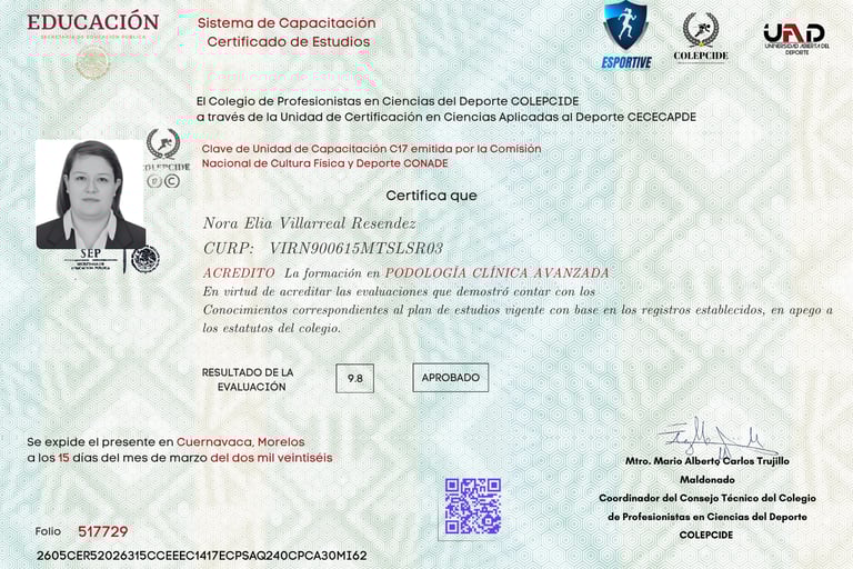 CERTIFICADO DE REGISTRO Y VALIDEZ OFICIAL