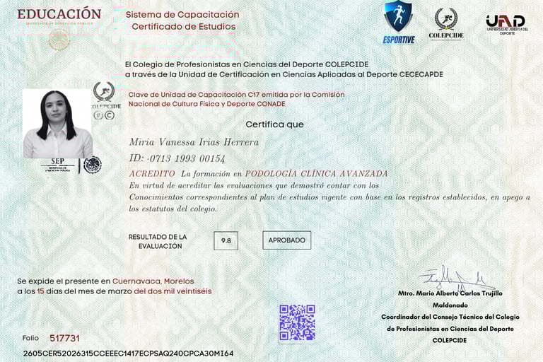 CERTIFICADO DE REGISTRO Y VALIDEZ OFICIAL